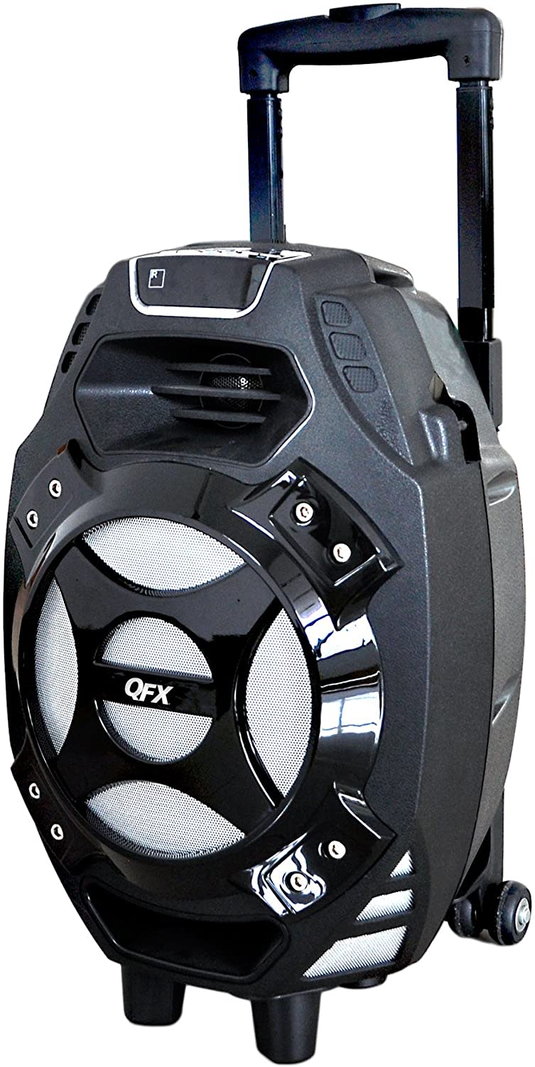 Portable bluetooth speaker can be used indoor or outdoor for any event. This speaker is able to be used in multiple ways either through bluetooth, usb, sd card slots, or aux cord. Easy to transport with the rolling wheels and pullup handle bar. this 8 inch woofer will be sure to let you hear things clearly at your event.